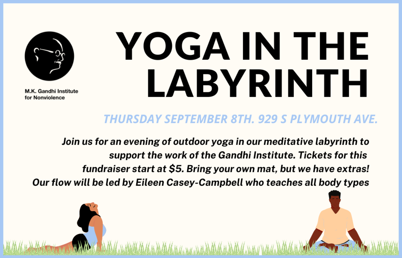 Join us on Thursday September 9th for a fun, relaxing summer fundraiser. We'll spend the evening doing yoga on our outdoor meditative labyrinth. Tickets start at $5, please give what you can.
