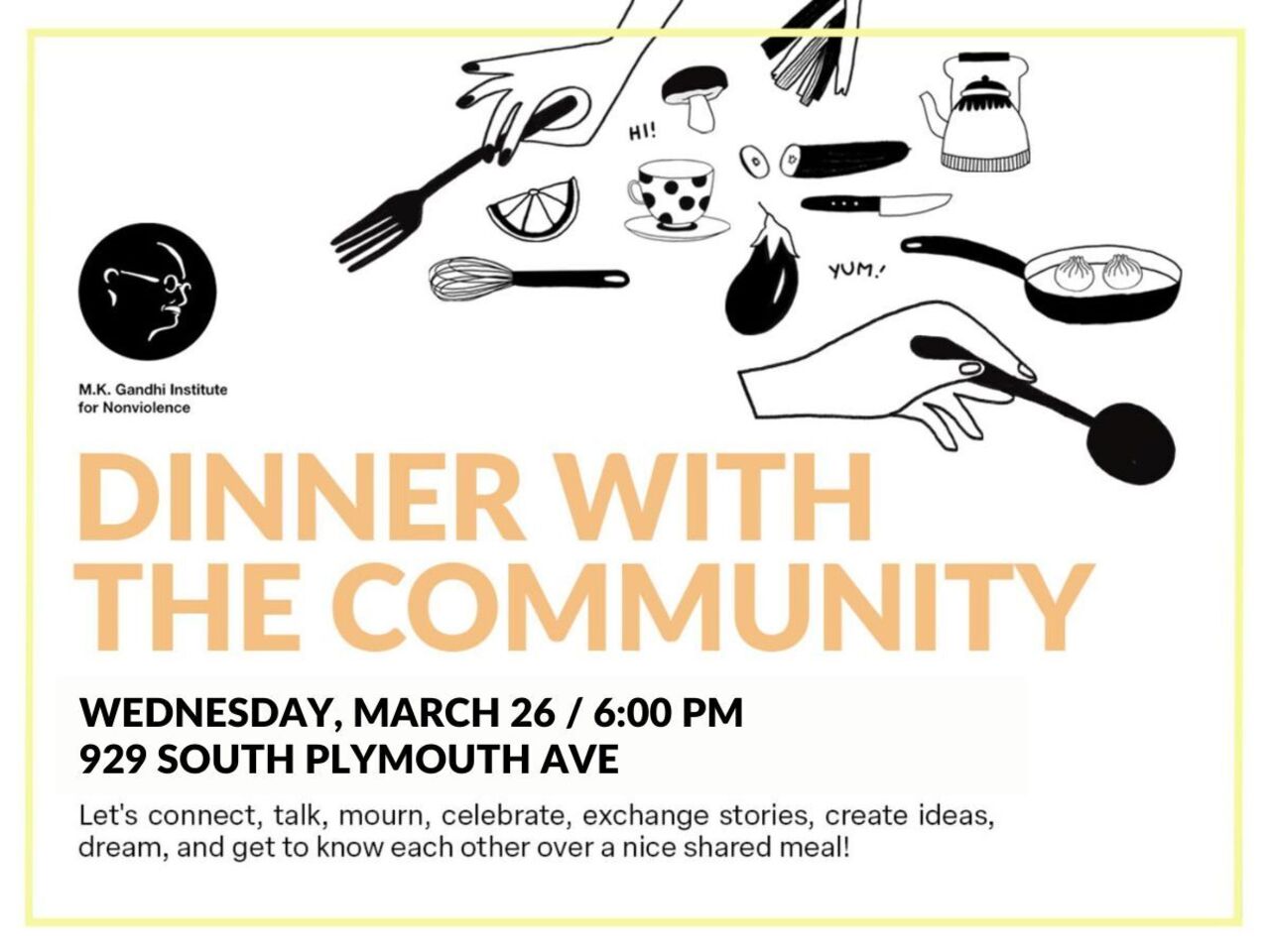 Have some warm food and conversations at a Community Dinner!Don't miss the next Community Dinner on March 26th at 6 PM. Bring a dish if you would like to, but don’t worry, we’ll be cooking up a few of our own! Everyone is welcome.
