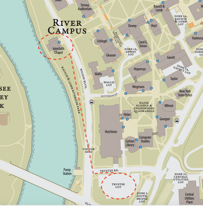 - Begin at the Trustee Lot on the University of Rochester campus.